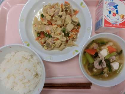 給食では、葛粉が希少でお高いことから、片栗粉を使っています。