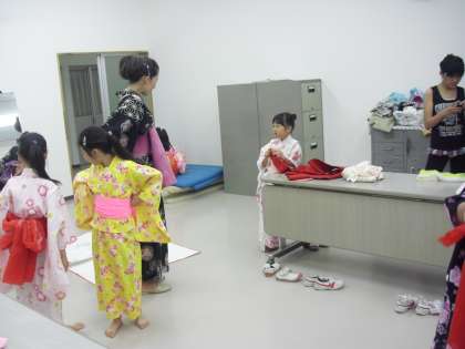 夏休み初日の7月21日(木)よりサマースクールが始まりました。今年度も保護者や地域の方々のご協力により、全14教室開催することになりました。写真左は「着付教室」です。浴衣を着るといつもとちがう自分にうれしさを隠しきれずに、学童クラブやBOPに来ている友達にみせてはしゃいでいる子もいました。写真中央は「けん玉教室」です。ひざを上手に使ってリズムよく「もしかめ」をやっている子がいました。初めてけん玉をやる子も、1時間も練習するとだいぶ上手になっていました。写真右は「お茶教室」です。凜とした空気の中、お茶の作法を習う子ども達。普段とはちがった顔つきでした。7月27日(水)まで5日間行われます。