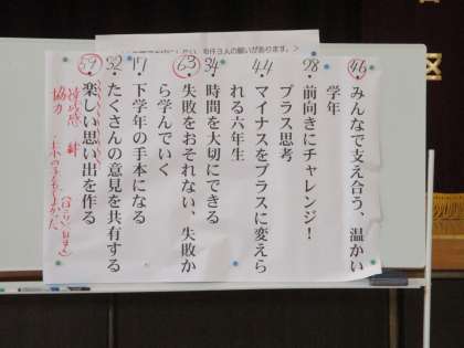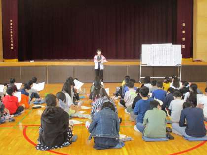 6年生は体育館で学年集会を行いました。学校のルールや学年の目標などを確認しました。上小のリーダーとして頼もしいですね!!