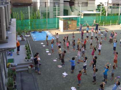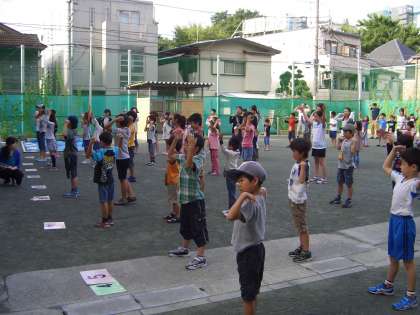 7月21日から27日までの5日間、恒例のラジオ体操がPTA主催で行われました。台風の影響で、21日は中止になりましたが、4日間、朝6時半から行いました。親子、兄弟で参加する人も多く、元気にラジオ体操をしていました。