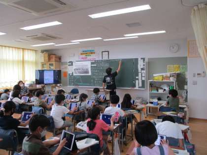 2年生の体育、5年生の社会の様子です!2年生は準備体操のあと、テキパキとマットの準備をしていました。5年生は、ダムや水源林の役割について考えました。