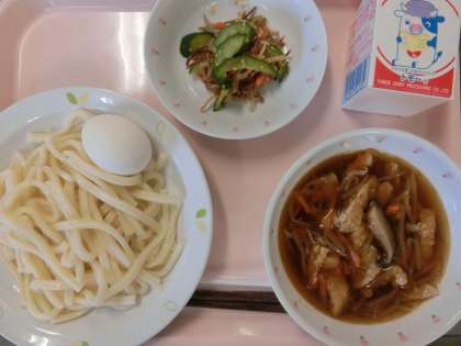 今日は、歯がための日です。歯がための日にちなんで“むし歯のもんだい”の本を選びました。しっかりかんで食べられるように、今日のサラダにはするめが入っています。給食室からするめのいい香りがただよっていました。