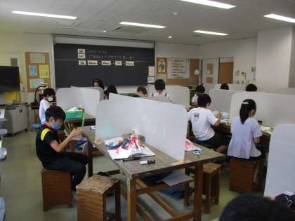 4年生の図工の様子です。個性豊かな作品を作っていました。素敵な作品に思わずパシャリ!!