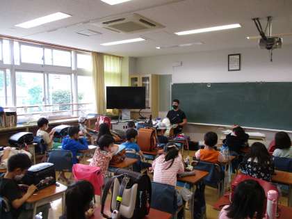 下校時の避難訓練でしたが、あいにくの空模様と校庭がかなりぬかるんでいたために、外には出ないで放送による訓練になりました。