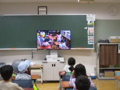 各クラスの紹介動画を放送しました。まずは1,2年生を紹介しました。