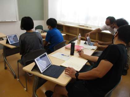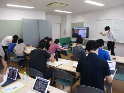 9月3日から始まる分散登校に向けて、先生方はタブレット端末を使った授業や子どもたちとのやり取りの研修を行いました。何をどこまでできるか・・・研修会のあとも学年の段階なども違うので学年ごとに研修の続きをしていました。
