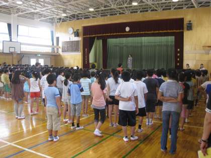 9月1日、2学期のスタートです。立派な態度で始業式に参加している子どもたち。みんな元気な様子で一回り大きくなったように感じられました。
