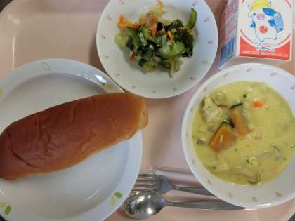今日の献立は、黄金色に熟したかぼちゃのシチューです。