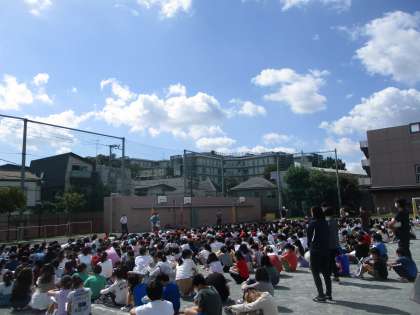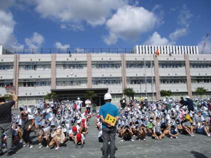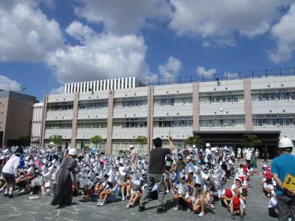 緊急事態宣言が解除され、避難訓練も校庭に全校で非難することができました。