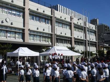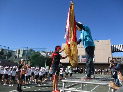 開会式の様子です。6名の1年生代表児童、2名の応援団長、立派でした!