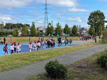 玉川上水の遊歩道を通って、おおぞら公園に到着です。