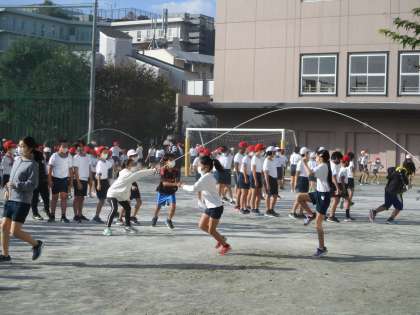 毎年恒例の長縄大会が行われました。自己新記録をめざし各クラスがんばっていました。
