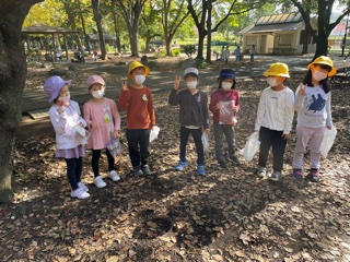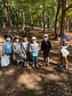 遊具遊び以外は秋探しをやっています。ドングリ落ちてないかな?