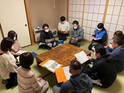 今日の反省と明日の予定を確認しています。予想以上に戦場ヶ原のトレッキングができて良かったと言う話が出ました。