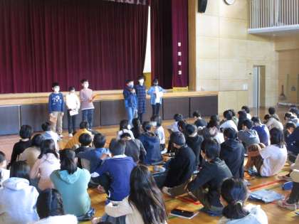 昨日は、帰りが遅くなり帰校式が出来なかったので、本日改めて体育館で行いました。みんなよい顔していました!おうちで土産話がありましたでしょうか。