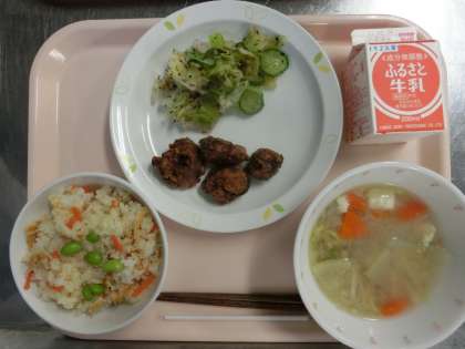 今日は、ニタリクジラを竜田揚げにしました。日本には昔から捕鯨の文化があったことから、全国学校給食週間に合わせて提供しています。