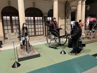 左人力車。右前輪の大きな自転車
