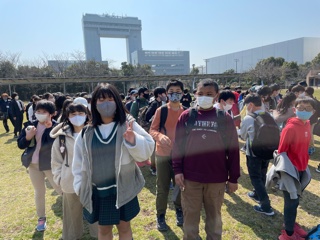 川崎マリエンを望む公園でこれから昼食を食べます。