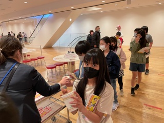オリジナルカップヌードル作り。まずカップを受け取り、そこにオリジナルの絵を描きます。