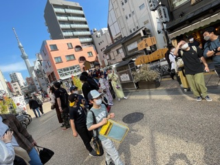 伝法院通りを歩く。白浪五人男があちこちにいます。