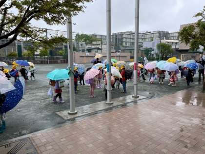 雨の下校風景