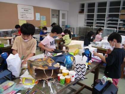 想像力豊かな3年生が、いろいろな材料を工夫して使い、楽しい世界を作ります。たかが紙袋が、スペシャルな紙袋に。どんな世界が出来上がるのでしょうね。是非のぞいてみたいです。