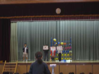 保健委員会からは「人の体温」をテーマに話がありました。体温計の使い方や、一日の体温の変化など、わかりやすく説明がありました。保健委員の人たちが実際に一日の体温を測ってグラフにしていました。早おきがよいことの理由の1つは、朝は体温が低めだから、活動しやすい体温まで上げる必要があることだそうです。