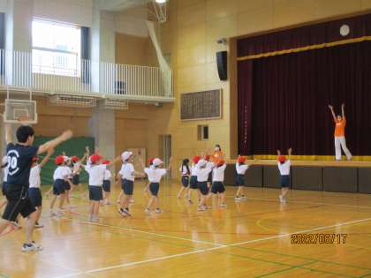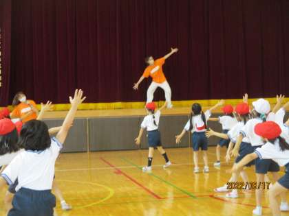 日本ストリートダンス協会の方を講師にお招きし、2年生が体育館でダンスを習いました。習っているというより、インストラクターの方々のまねをしていると、みるみるダンスが上手にできるようになっていく、という感じでしょうか。1時間たっぷり踊って、ヘトヘトになりましたが、とても楽しかったようでした。