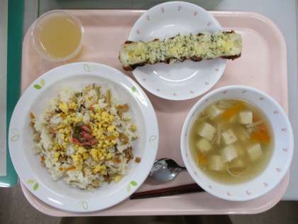 五目ずし、牛乳、ちくわのマヨネーズ焼き、七夕汁、りんごゼリー