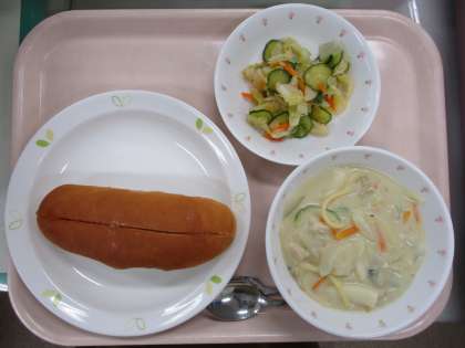 りんごジャムサンド、牛乳、シシリアン、野菜のイタリアンドレッシングかけ