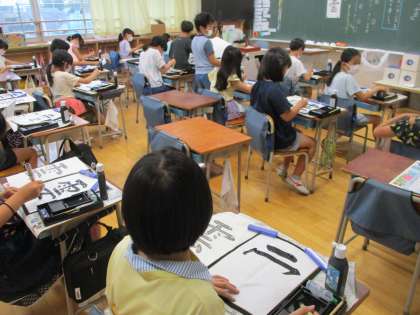 なるほど。確かにそのようにしてかくと、きれいな点がかけました。文字のバランスをとるのが難しい習字ですが、しっかりと取り組み、丁寧な文字をかくことができました。