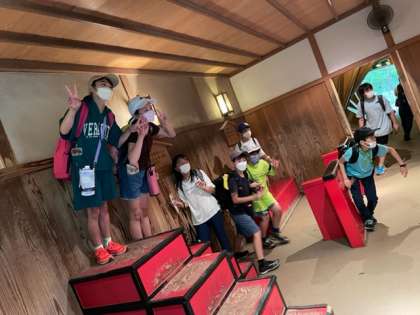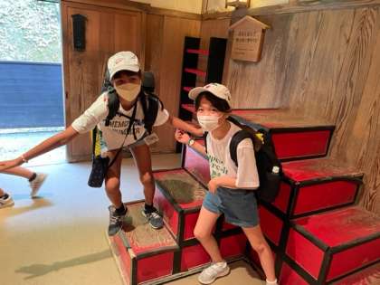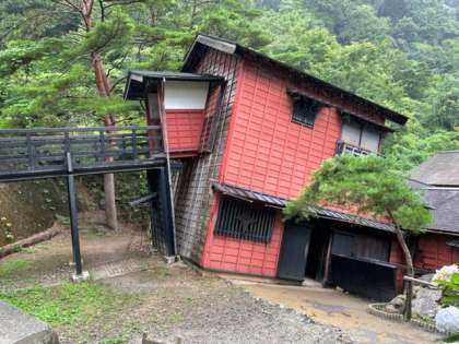 建物が傾いでいるから、なぜか壁に吸いつけられるでござる。