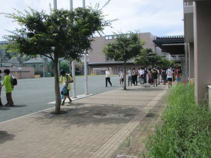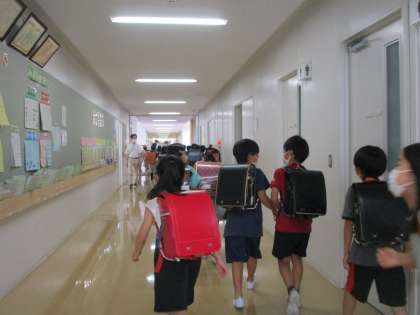 大型の台風が接近し、一人で下校するのが危険なため同じ通学路を通って帰る児童がまとまって下校することを想定した避難訓練が行われました。