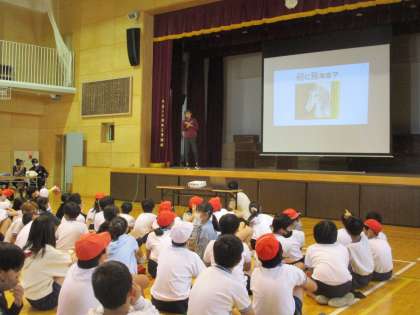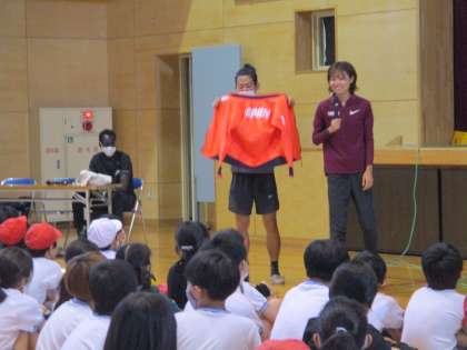 東京オリンピックにも出場した陸上競技の選手の方やコーチの方をお招きし、6年生に向けた授業が行われました。3時間目は体育館で、物事をいろいろな角度から見ることの大切さを教えていただきました。また、選手の方への質問コーナーも設けていただき、「オリンピックでは緊張しましたか。」「身長は何センチですか。」など子どもたちからの質問にお答えいただきました。