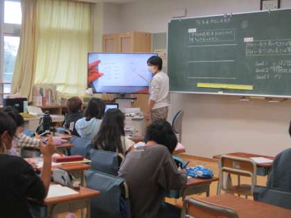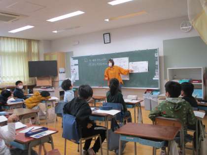 垂直や平行、四角形について、4年生3クラスが4つのグループに分かれて、少人数で学んでいました。それぞれのクラスの子どもたちの様子に合わせ、また、通常より少ない人数で学ぶことで学力の定着を図ります。