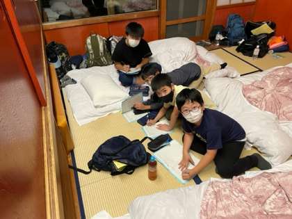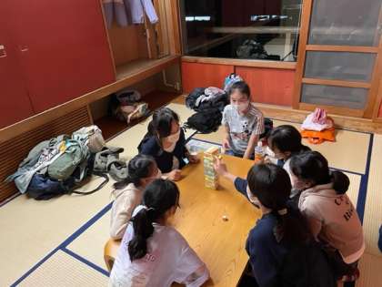 布団を敷いたり、今日の振り返りを書いたり、ジェンガで遊んだり、それぞれまったりと過ごしています。