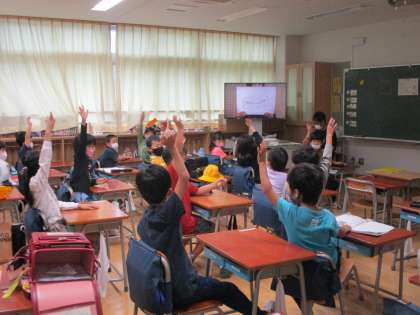 今回は、ハロウィンに関するクイズでした。新しく知ったことも多く、興味をもって集会に参加し、楽しい時間を過ごせました。