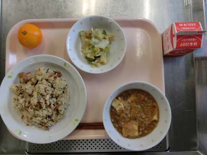 磯ごはん、牛乳、生揚げそぼろあんかけ、ごま酢かけ