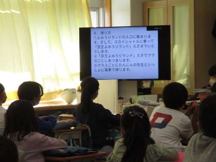 なかよしタイムの時間に、よみうりランド遠足の説明が6年生からありました。