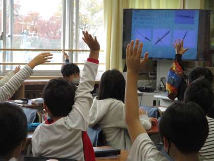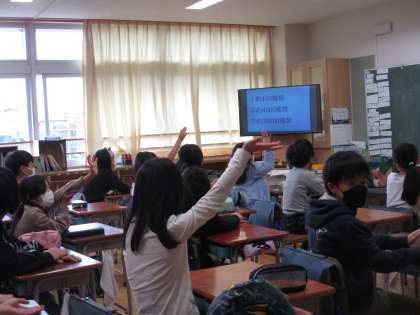 朝の時間に、テレビ放送で児童集会がありました。今日はクイズ集会でした。集会委員の考えたクイズは三択クイズや○×クイズなど。季節感のあるものもあり、よく工夫されていました。