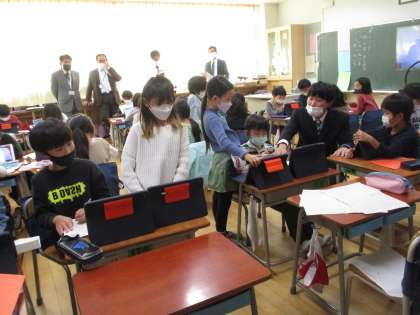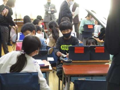 5時間目の研究授業では、自分の作ったお話を友だちと読み合って、もっとわかりやすくするために、どのように書き換えたらよいかを学ぶ国語の授業が2年3組でありました。