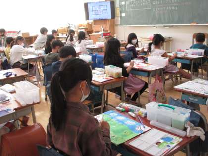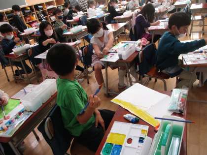 2学期の楽しかったできごとを絵に表しました。学校での行事のことや家族で出かけたときのことなど、どの子も様子を詳しくかくことができていて、楽しかったことが伝わってきました。