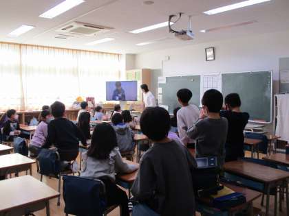 朝の時間に、集会委員によるテレビ放送集会がありました。