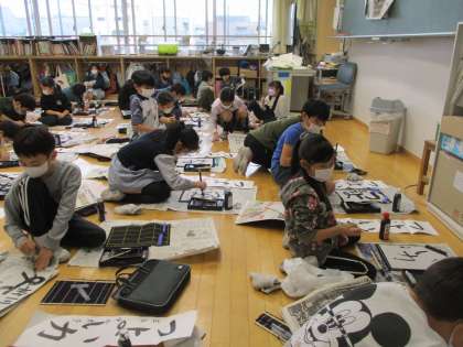 3年生は教室で書き初めの練習をしていました。お手本の文字の形をよく見て、苦手なところを何度も書き、熱心に取り組んでいました。