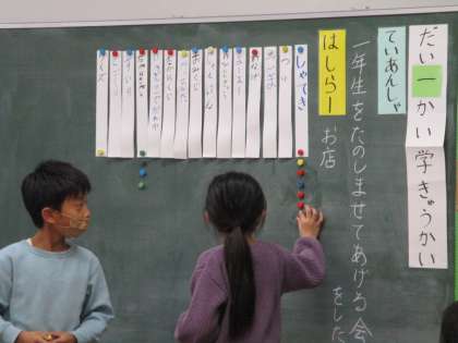 どんな遊びを1年生は喜んでくれるかな、楽しんでくれるかな、と2年生が学級会を開いて真剣に話し合っていました。