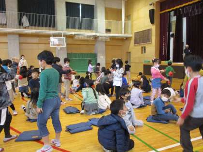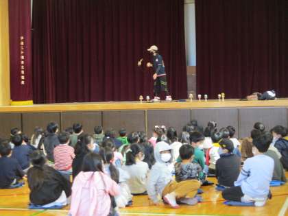 日本けん玉協会の指導員の先生に来ていただき、2年生がけん玉を教わりました。