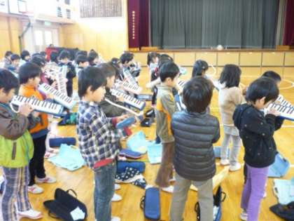 入学から約1年経ち、少しお兄さんお姉さんになった1年生が、鍵盤ハーモニカ