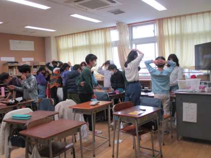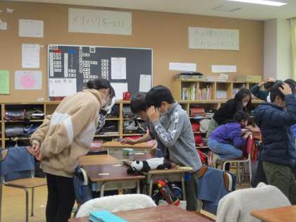 5年生が、ルールをきちんと守って楽しく百人一首をしていました。
