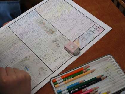 教科書やタブレットを活用して、東京都について学んだことのまとめとして新聞づくりをしていました。