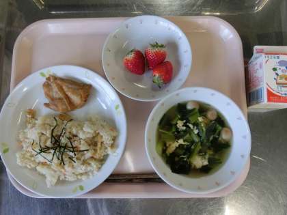 鯛飯、牛乳、鶏肉の照り焼き、すまし汁